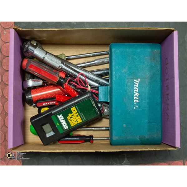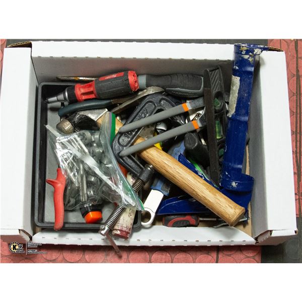 BOX OF AUTOMOTIVE/SHOP TOOLS AND