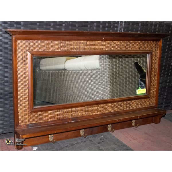WOOD AND WICKER WALL MIRROR CLOTHS RACK