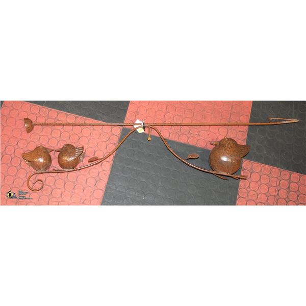 BROWN METAL BALANCING BIRDS ON STAND GARDEN DECOR
