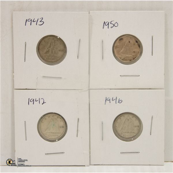 4 CANADIAN SILVER 10 CENT 1942, 1943, 1946, 1950