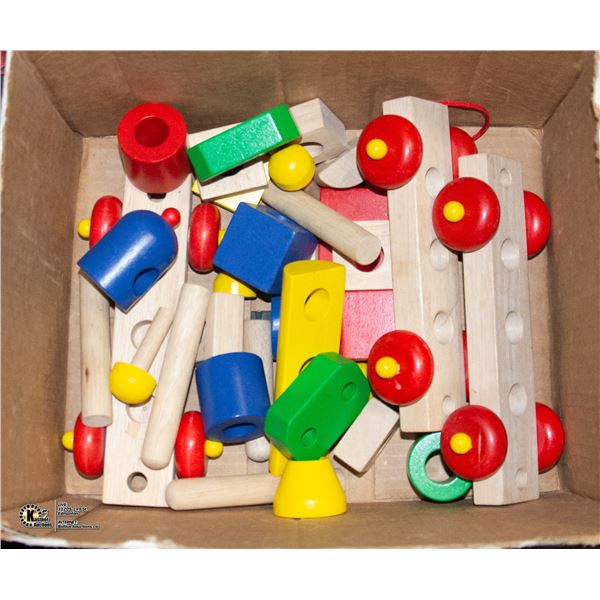 WOODEN BUILDABLE TRAIN SET - HAS PULL STRING TO