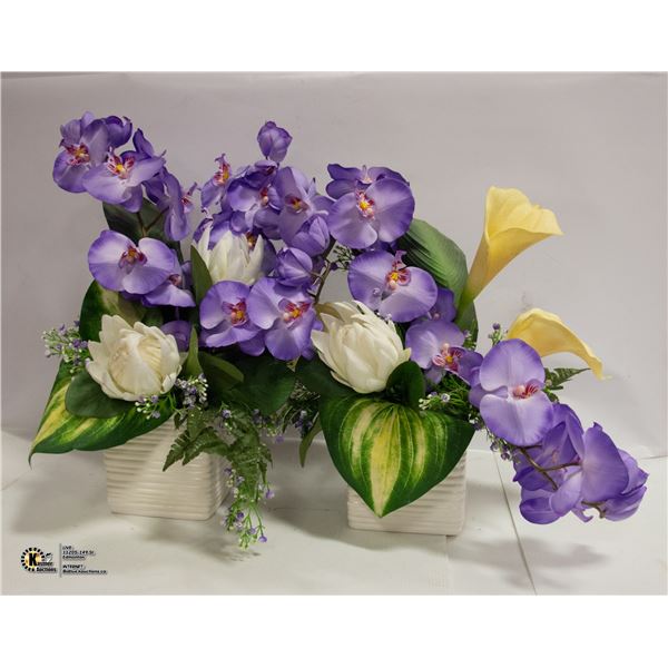 PAIR OF FLORAL ARRANGEMENTS, SILK, LILAC &