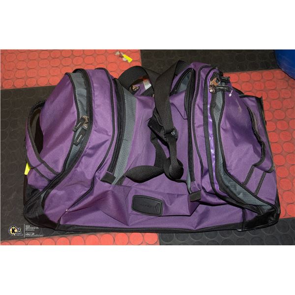 HANDLE, PURPLE WITH GRAPHITE AND BLACK TRIM, MULTIPLE POCKETS, HEAVY DUTY ZIPPERS AND PULLS, 25"-LONG X 13"-WIDE X 13"-HIGH) - QUAL...