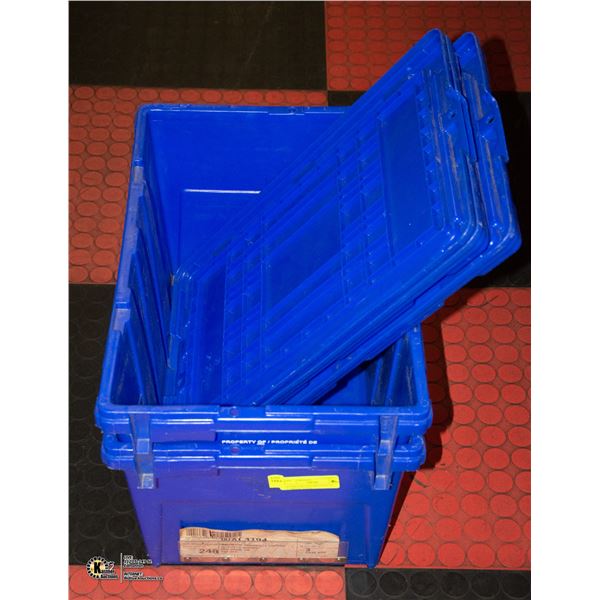 WITH LIDS - STACKABLE, BLUE NYLON PLASTIC (20.5"L X 14"W X 11"H)
