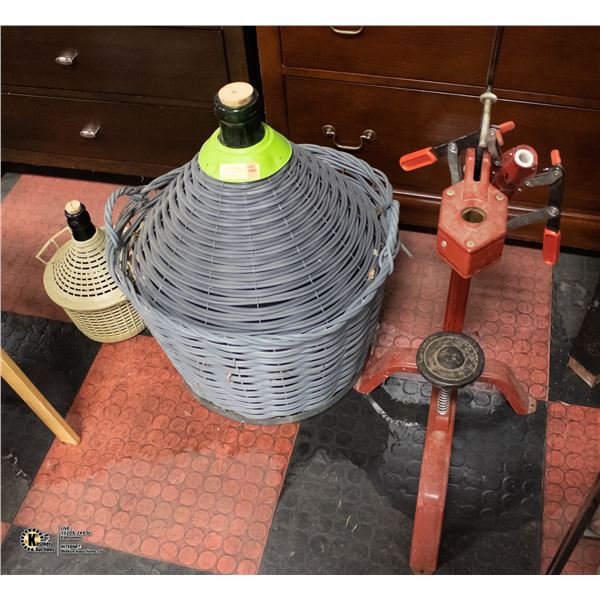 PAIR OF ESTATE CARBOY'S + WINE BOTTLE CAPPER