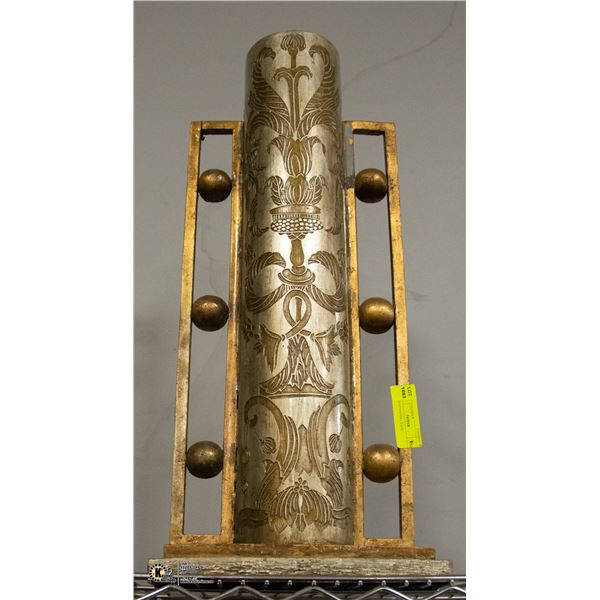 AND 5 INCH CAST IRON PAN WITH WOOD TABLE SAVER BASE