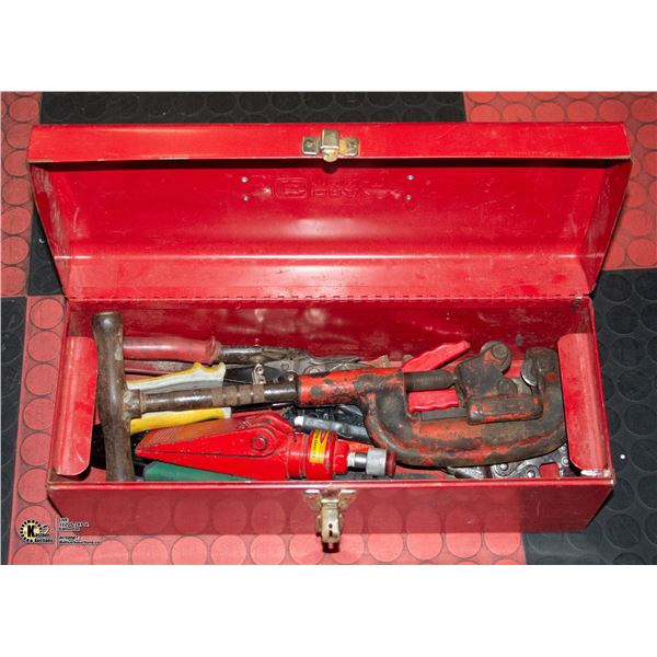 TOOL BOX W/ PIPE WRENCHES, PIPE CUTTER