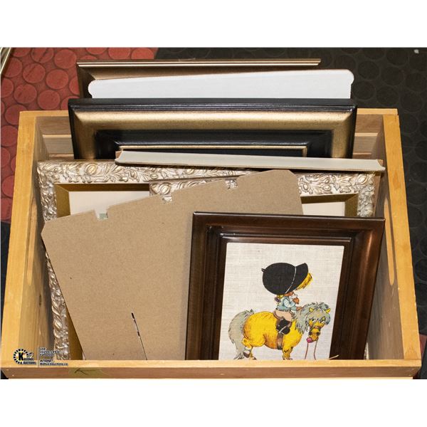 ASSORTED FRAMED ART IN WOODEN BOX