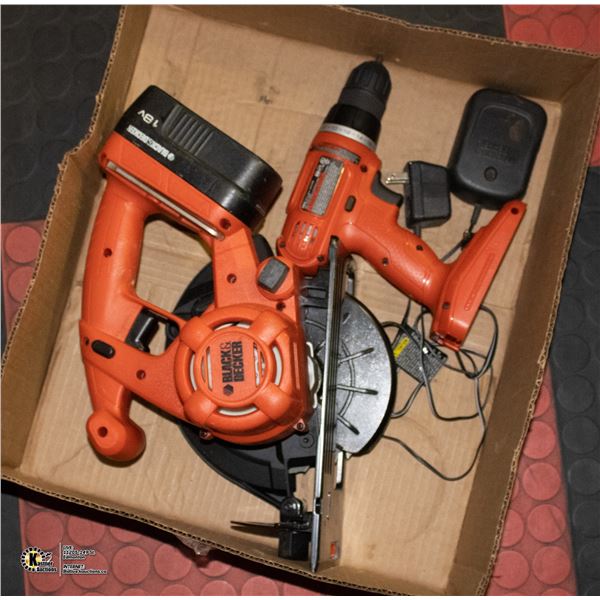 BLACK & DECKER 18V DRILL, SAW AND CHARGER
