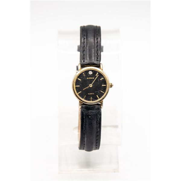 1990 BIRKS WATCH W/ DIAMOND CHIP + GENUINE LEATHER92 - 1990 BIRKS WATCH W/ DIAMOND CHIP + GENUINE LEATHER