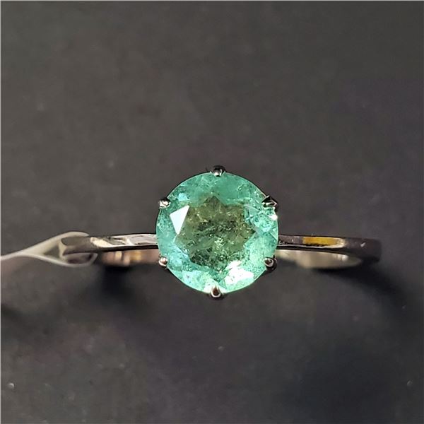 14K WHITE GOLD NATURAL COLOMBIA EMERALD(0.7CT) RING (~SIZE 6)(RING IS RESIZABLE FOR $40) (~WEIGHT 1.68G), MADE IN CANADA, APPRAISED RETAIL $1650