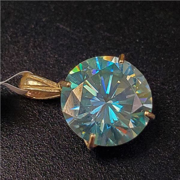 14K YELLOW GOLD GREENISH BLUE MOISSANITE(8CT) PENDANT (~WEIGHT 1.66G), MADE IN CANADA, APPRAISED RETAIL $1385