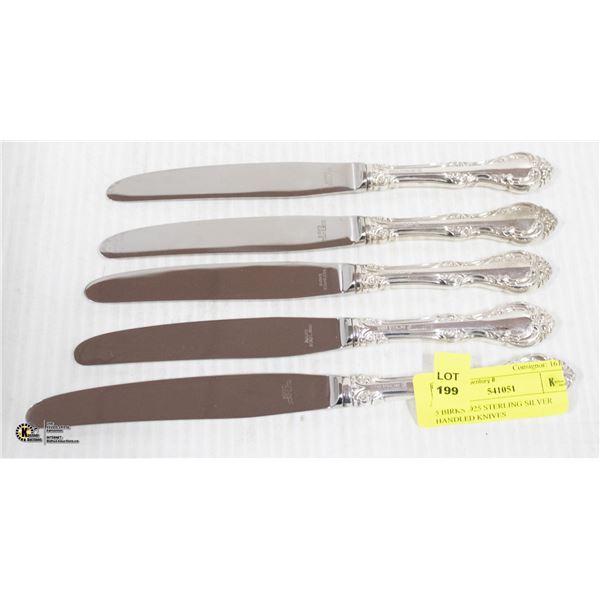 5 BIRKS .925 STERLING SILVER HANDLED KNIVES