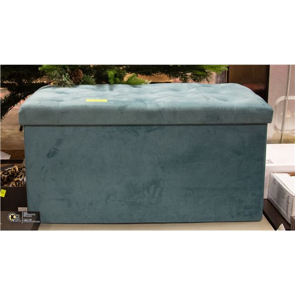 NEWLY ASSEMBLED VELVET AQUA OTTOMAN STORAGE CHEST
