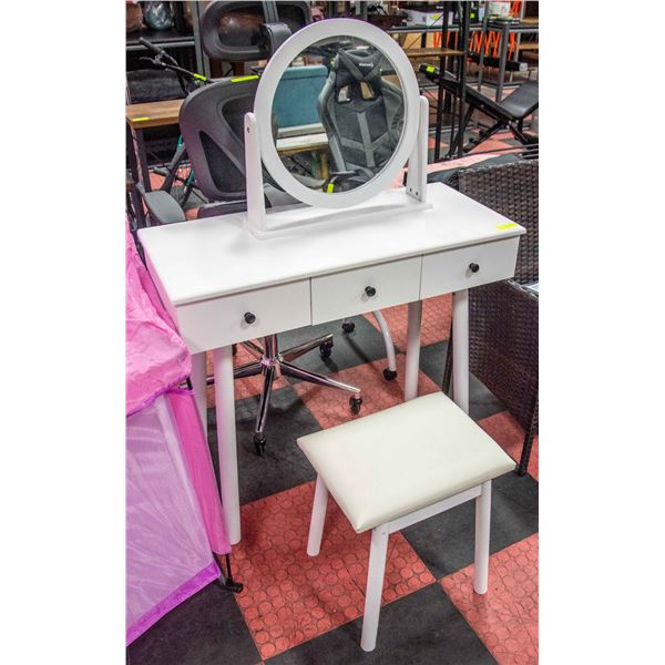 NEW ASSEMBLED WHITE DESK WITH DRAWERS + STOOL