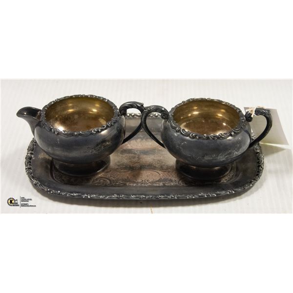 SUGAR CREAMER SET ON PLATE VINTAGE MARLBORO PLATE