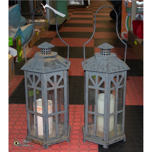 2 BLACK LANTERNS WITH CANDLES 21" TALL
