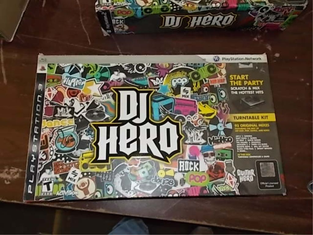Jay-Z Eminem, Draft Punk-Quen, 50 cent-David Bowie, The Killers-Rihanna, Jackson 5- Third Eye Blind, Beastie Boys- Bell Biv DeVoe, Black Eyed Peas-Benny Benassi & More In this box is turn table, controller & game.