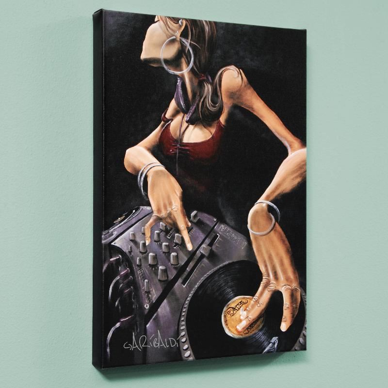 Combining his passions for music and art, David Garibaldi create visual poetry. "DJ Jewel" is a limited edition giclee on stretched canvas, M numbered and bearing the artist's authorized signature. This piece comes gallery wrapped. Includes Certificate of Authenticity! Measures approx. 40" x 60" (image).
