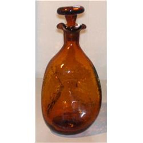 THE HOLIDAYS ARE COMING! THIS WOULD MAKE A GREAT GIFT. I OFFER GIFT WRAP (let me know the occasion) FOR $5.00 AND CAN SHIP TO 3RD PARTY ADDRESS(ES) WITH PRIOR ARRANGEMENTS AND AFTER PAYMENT. ****** FABULOUS NEAR MINT CONDITION MOUTH BLOWN HONEY AMBER COLOR TOPAZ COLOR BLENKO #49 CRACKLE GLASS PINCH DECANTER WITH ORIGINAL FLAT MOUTH-BLOWN STOPPER. This one must have been kept in some little old ladies' cabinet because I cannot find a scratch, chip, break, repair, or any other flaw or damage. There is a tiny bit of appropriate age wear on the bottom that has just removed a bit of the shine where it sets. NO TWO PIECES OF HAND-MADE, MOUTH-BLOWN GLASS ARE EXACTLY ALIKE. VARIATIONS IN COLOR DISTRIBUTION, BUBBLES IN THE GLASS, AND OTHER DISTINCTIVE BLOWN-GLASS CHARACTERISTICS ARE NORMAL, AND ARE CONSIDERED A PART OF THE CHARM OF BLOWN GLASS. THESE VARIATIONS ARE NOT FLAWS. THE SAME HOLDS TRUE OF CRACKLE GLASS. IF YOU HAVE ANY QUESTIONS OR INFORMATION REGARDING THIS ITEM, PLEASE COMMUNICATE WITH DEALER PRIOR TO BIDDING OR MAKING AN OFFER FOR PURCHASE. I AM OPEN TO POST-BIDDING/PURCHASE COMMUNICATION, BUT REMEMBER, ONCE YOU BID OR OFFER FOR PURCHASE, YOU ARE BOUND BY CONTRACT FOR THE PURCHASE. I accept only PayPal, Money Order or Cashier's Check. You may use any of the PayPal Services, including payment by Credit Card. For Buyers in the United States, shipping will be Actual USPS Priority Mail, plus $7.50 for Very Careful Packing and Materials. Insurance is Required and is charged ...