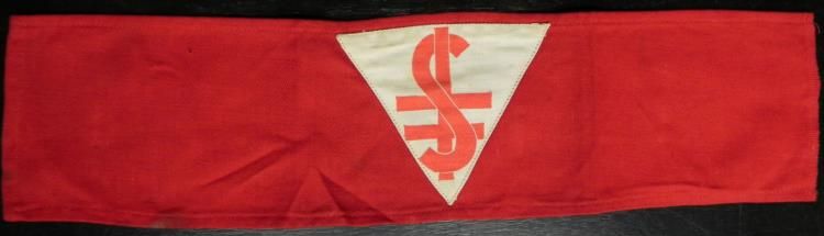 OFFERED HERE IS A ABTEILUNG SEGELFLUG (SECTION OF DLV) INSTRUCTOR'S ARMBAND. THE GROUP WAS TOGETHER FROM 1933 TO 1935--16". IT IS LONG--4 1/4" WIDE-- THERE IS A DOWNWARD POINTED TRIANGLE ON RED ARMBAND--"IS WITH DOUBLE HORIZONTAL LINES.