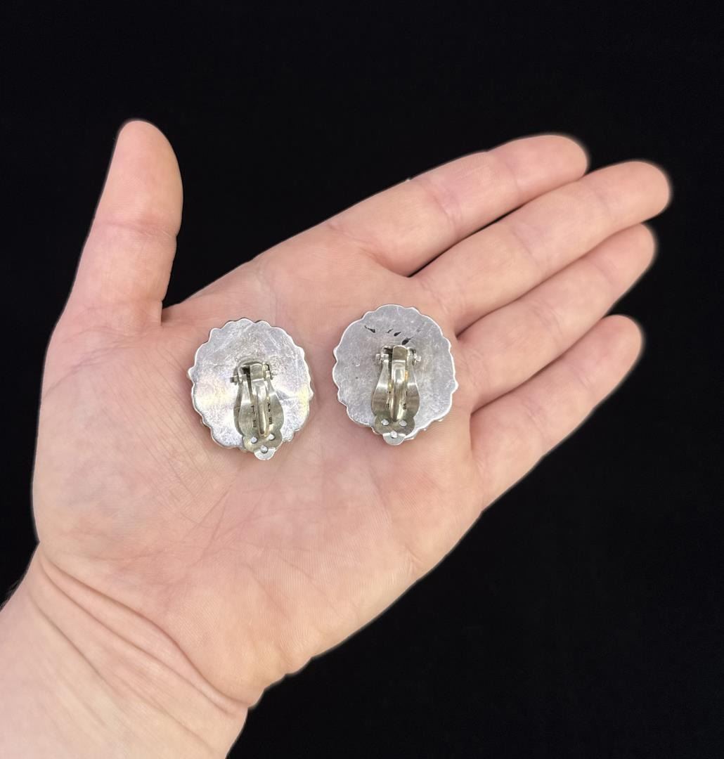 Turquoise and spiny oyster. Great set of earrings. 1 3/8" round. 17.86 grams.