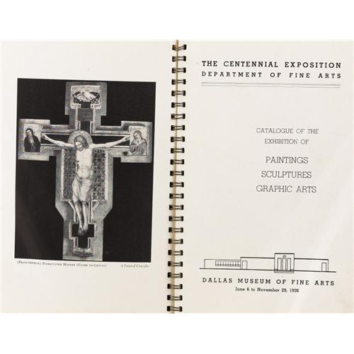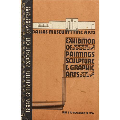 <I>Dallas Museum of Fine Art - Texas Centennial Exposition,</B></I> 1936<BR>Book - spiral bound<BR>8 1/2in. x 6in.<BR><BR>Two exhibitions stand out in Texas art history -- the Edgar B. Davis Wildflower Competition and the Texas Centennial Exhibition. This is a rare copy of the catalog produced for the Texas Centennial Exhibition, the most comprehensive art showing ever displayed in Texas up until that time. Texas painting was showcased taking up three rooms; a corridor, and two studios in the basement. The remainder of the exhibition was a survey of art from the primitives through the present day contemporary art. Other galleries in the exhibition were as follows: Primitive Gallery, Renaissance, Eighteenth Century, French, International, Retrospective American, Contemporary American, Southwest Painting, Frederic Remington, George Bellows, Print Gallery, Watercolor Gallery, and Sculpture Court.<BR><BR>This Texas Centennial Exposition catalog was the personal copy of Frank Redlinger, who's block print, <I>Back Lot,</B></I> was chosen to be exhibited in the Texas Print section. Unfortunately, Redlinger died a few weeks before the exhibition.<BR><BR>Provenance:<BR>Estate of Frank Redlinger<BR><BR> <B>Condition Report:</B> Excellent condition with minor wear and tear.<BR><BR><b>Shipping:</b> Requires 3rd Party Shipping (<a target="_blank" href="http://www.heritageauctions.com/common/shipping.php">view shipping information</a>)