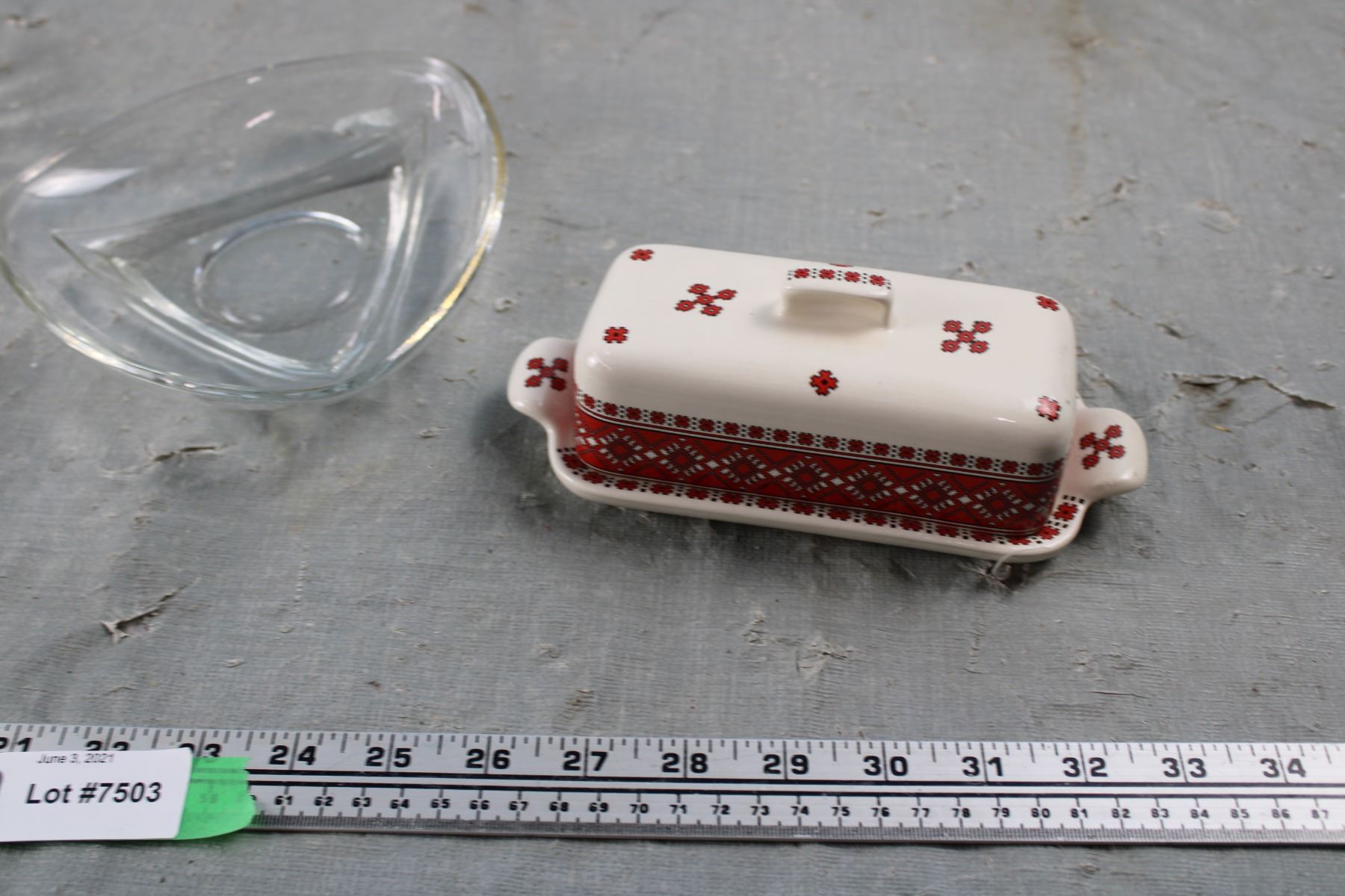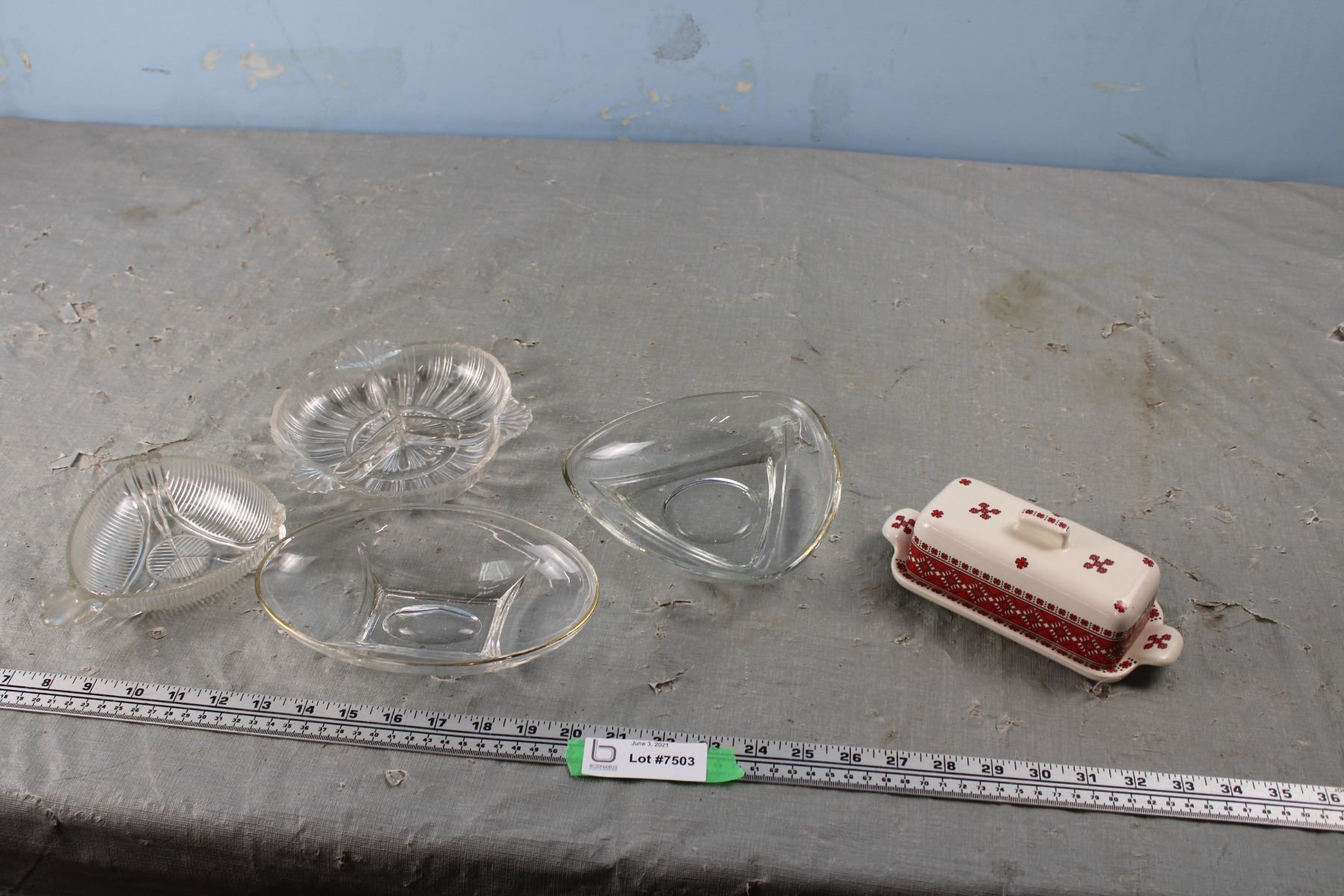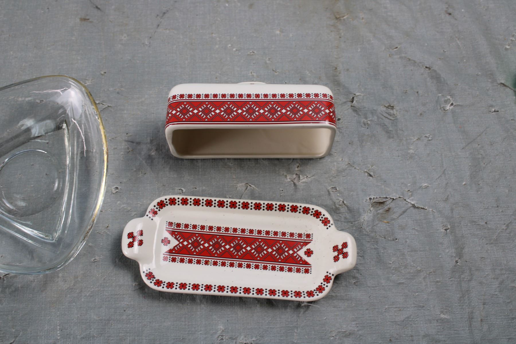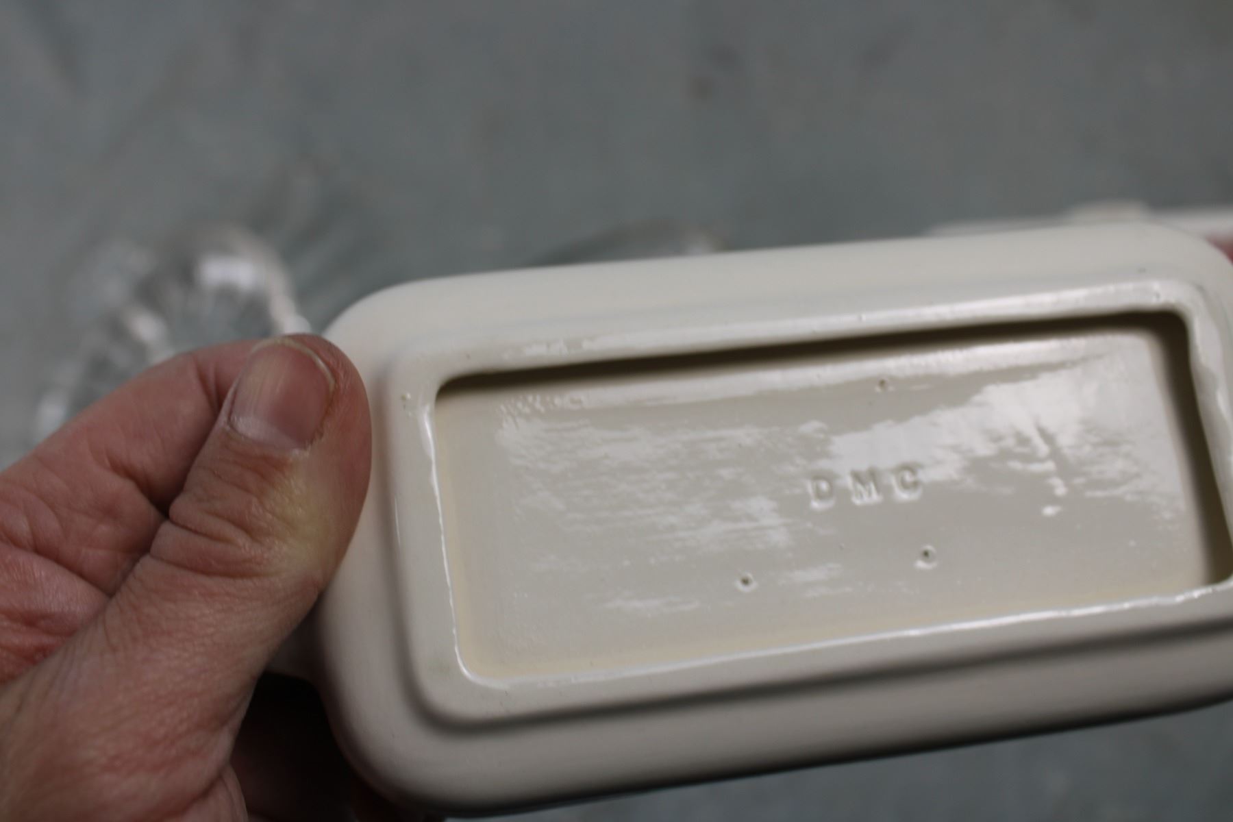 DMC Ceramic Butter Dish Plus Clear Glass Dishes