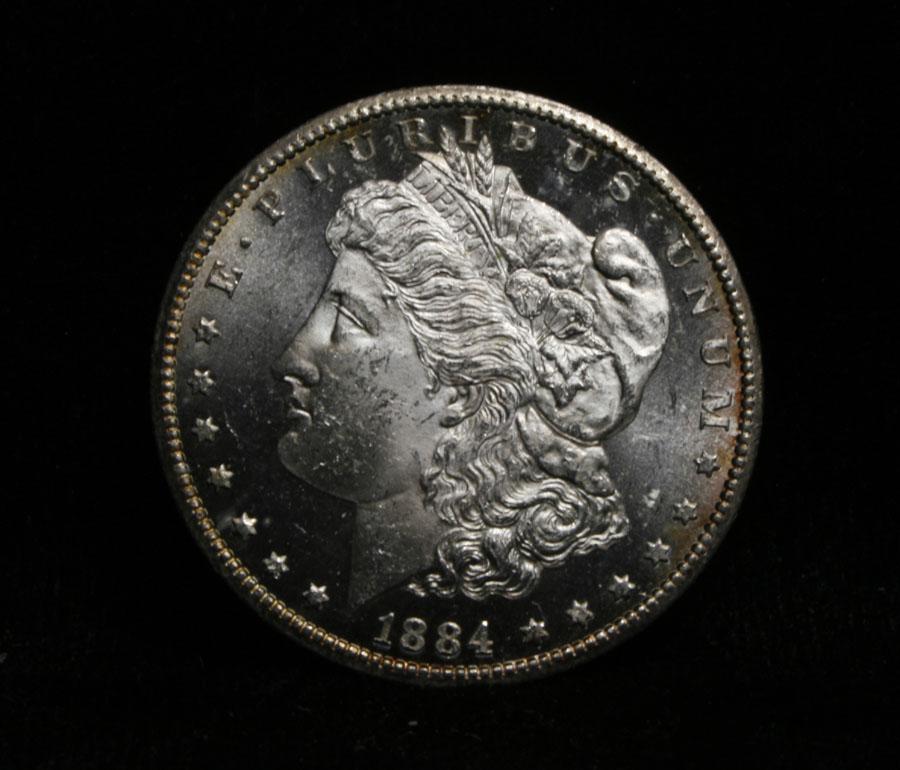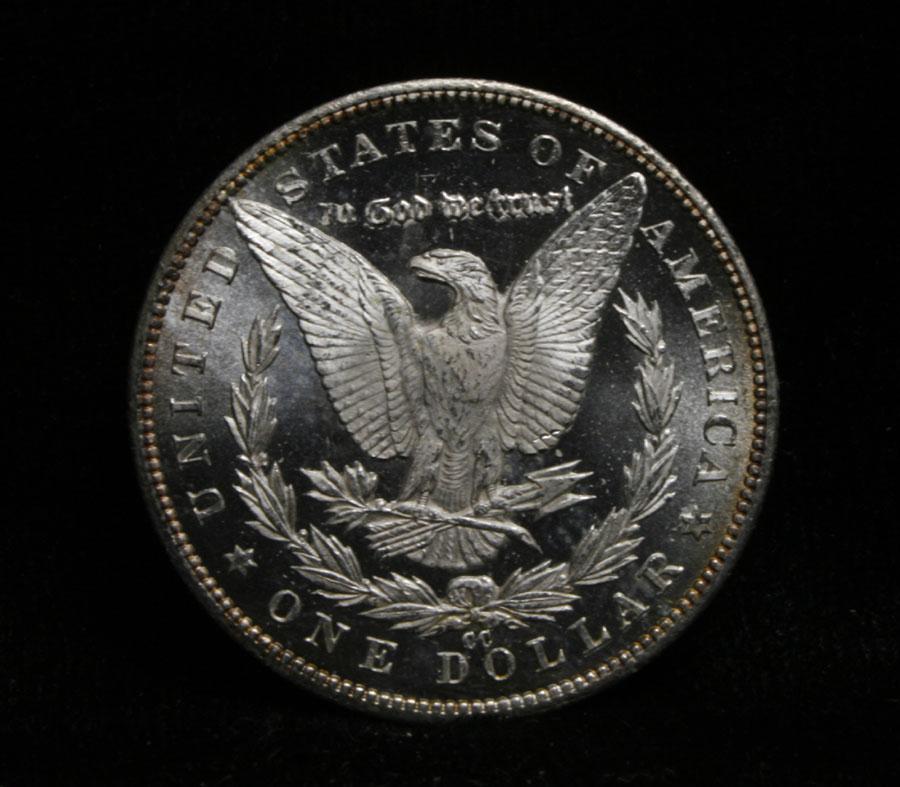 A stunning Deep Mirror Proof Like Carson City Morgan. All Original with a gold toning at the rim. It has very clean fields and a great strike, heavily Frosted Devices and nice Deep Mirrored Fields. All Original, I will offer my personal buy back guarantee, that this coin is all original and will not come back Ungradeable by any major grading service. Coin World's Coin Values lists ms65 DMPL at $1500 and The Wholesale Greysheet lists ms65 DMPL at $1300. Estimated Value $1400