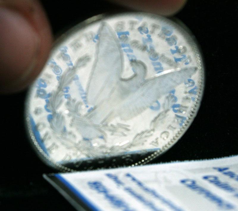 Super Deep Mirror Proof Like Morgan. This is the Triple crown, Great date 1890-cc, A DMPL, and a very rare and desirable VAM. It is the VAM 3, with a wild doubled 90. The mirrors are deep. Dynamite coin. Coin World's Coin Values lists ms63 DMPL at $1500 and The Wholesale Greysheet lists ms63 DMPL at $1050. Estimated Value $1250