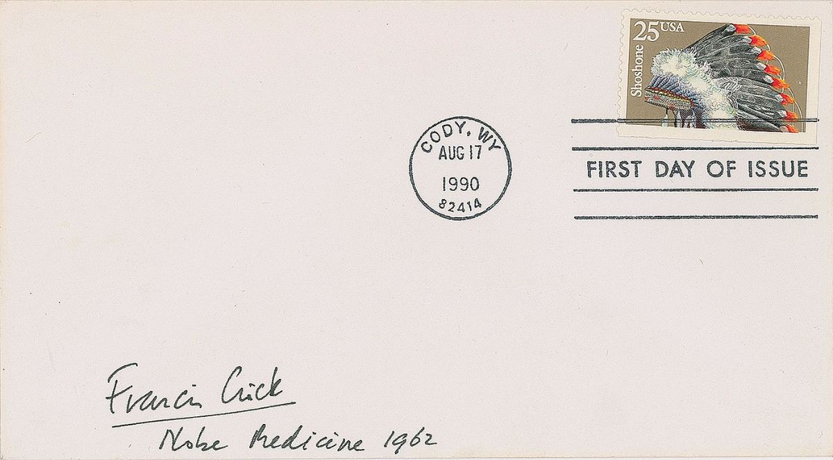 Appealing FDC signed in black ink, “Francis Crick, Noble Medicine 1962.” In fine condition.