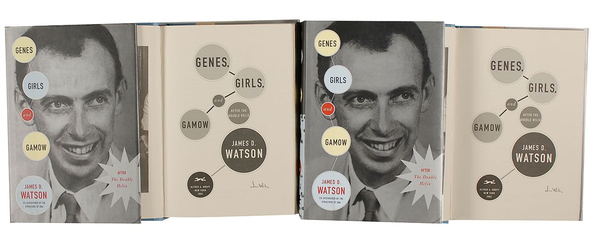 Four hardcover copies of Genes, Girls, and Gamow, each First American Editions and signed on the title page in black ballpoint by Watson. In fine condition.