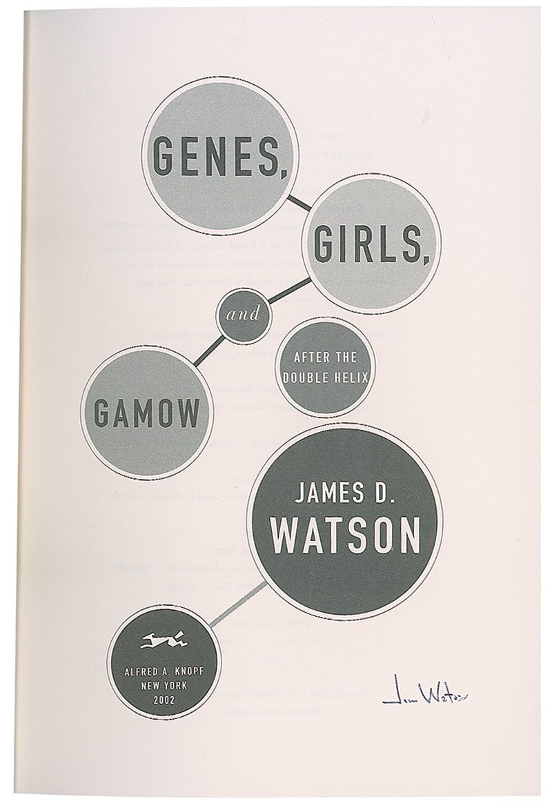 Signed book: Genes, Girls, and Gamow. First American edition. NY: Alfred A. Knopf, 2002. Hardcover with dust jacket, 6.5 x 9.5, 259 pages. Signed on the title page in ballpoint. In fine condition.