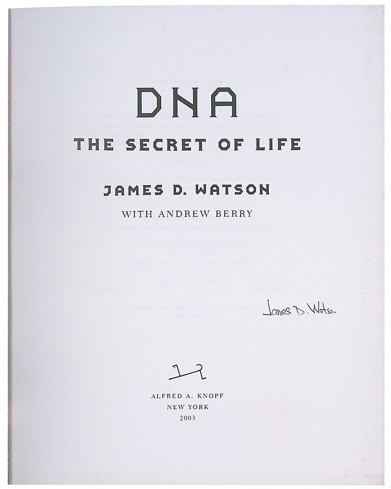 Signed book: DNA. First edition. NY: Alfred A. Knopf, 2003. Hardcover with dust jacket, 7.75 x 9.5, 446 pages. Signed on the title page in black ballpoint. In fine condition.