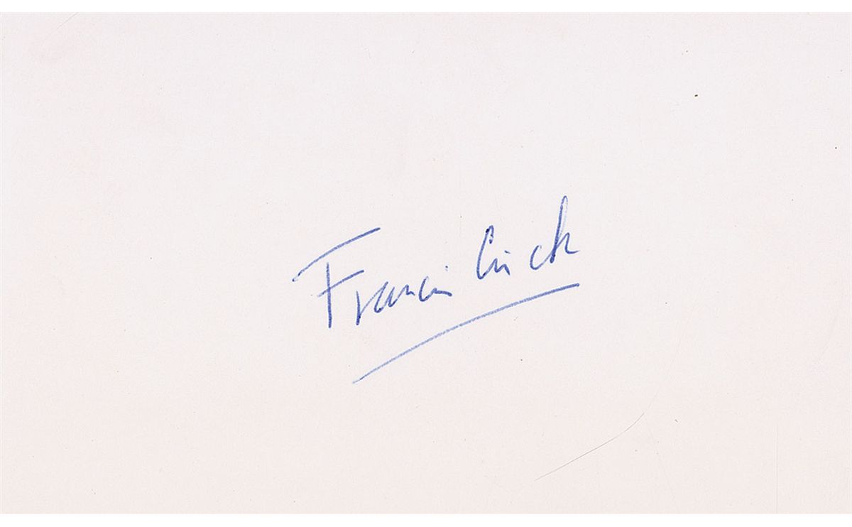 Uncommon collection of ink signatures, “Francis Crick,” “James D. Watson,” and “M. H. F. Wilkins,” on individual off-white 5 x 3 cards. In overall fine condition.