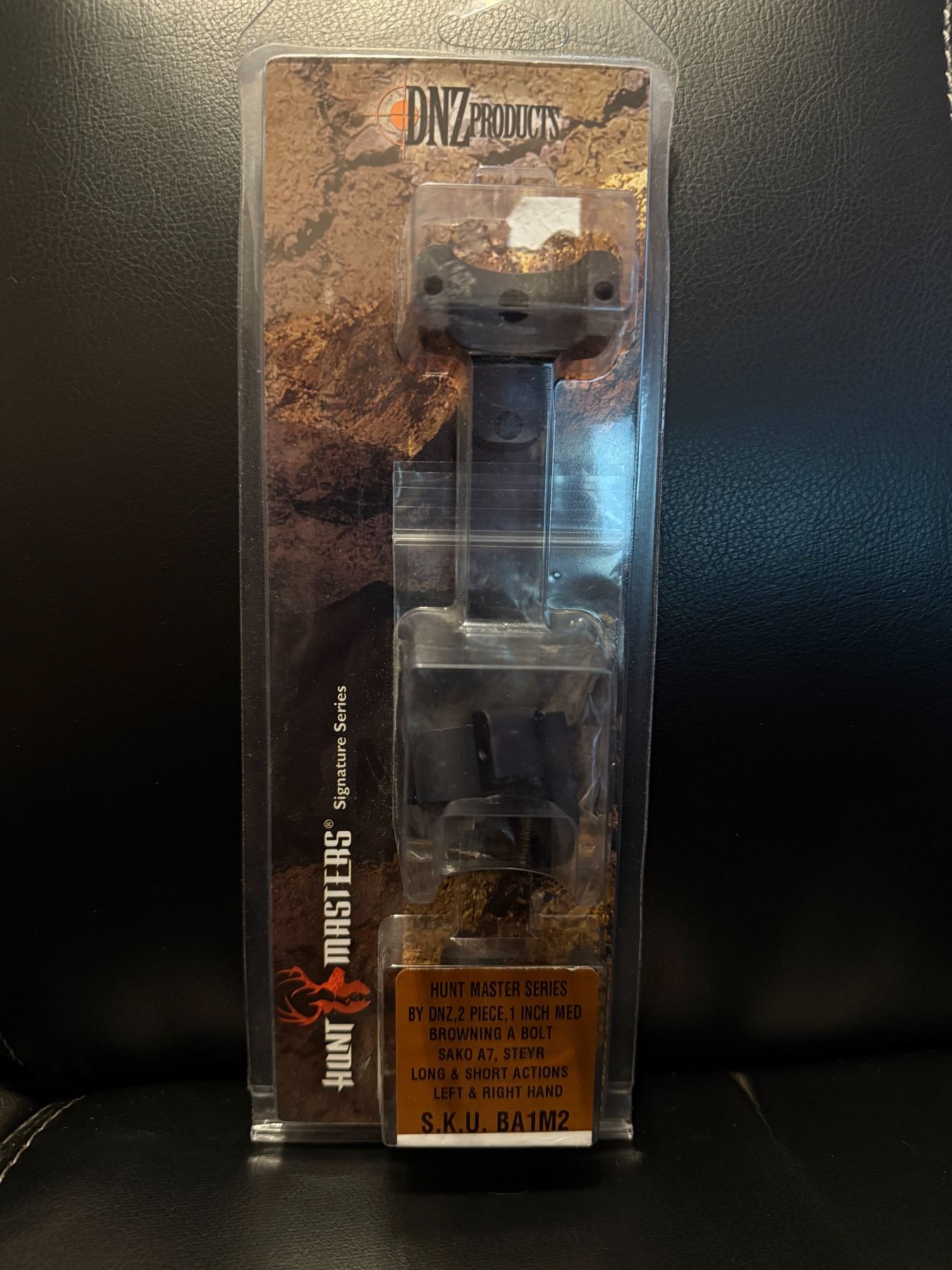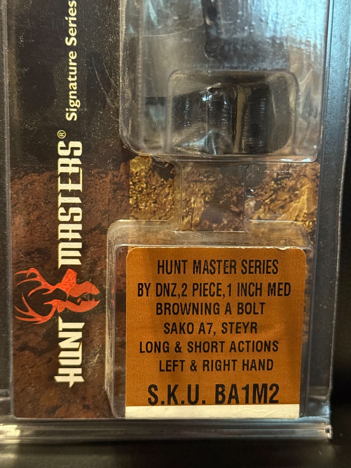 Brand-new, sealed DNZ Products Hunt Master Series 2-piece scope mount set. This is a high-quality, precision-machined mounting system known for its strength, accuracy, and reliability. Machined from lightweight 6061-T6 aluminum – approx. 1/3 the weight of steel. One-piece machined design for excellent strength and extreme accuracy. Reduces or eliminates scope damage from over-tightening. Fast installation – no special tools required. Extra thread length (up to 4x more – full 1/2"). Hardened Grade 8 steel screws, anodized for long life.