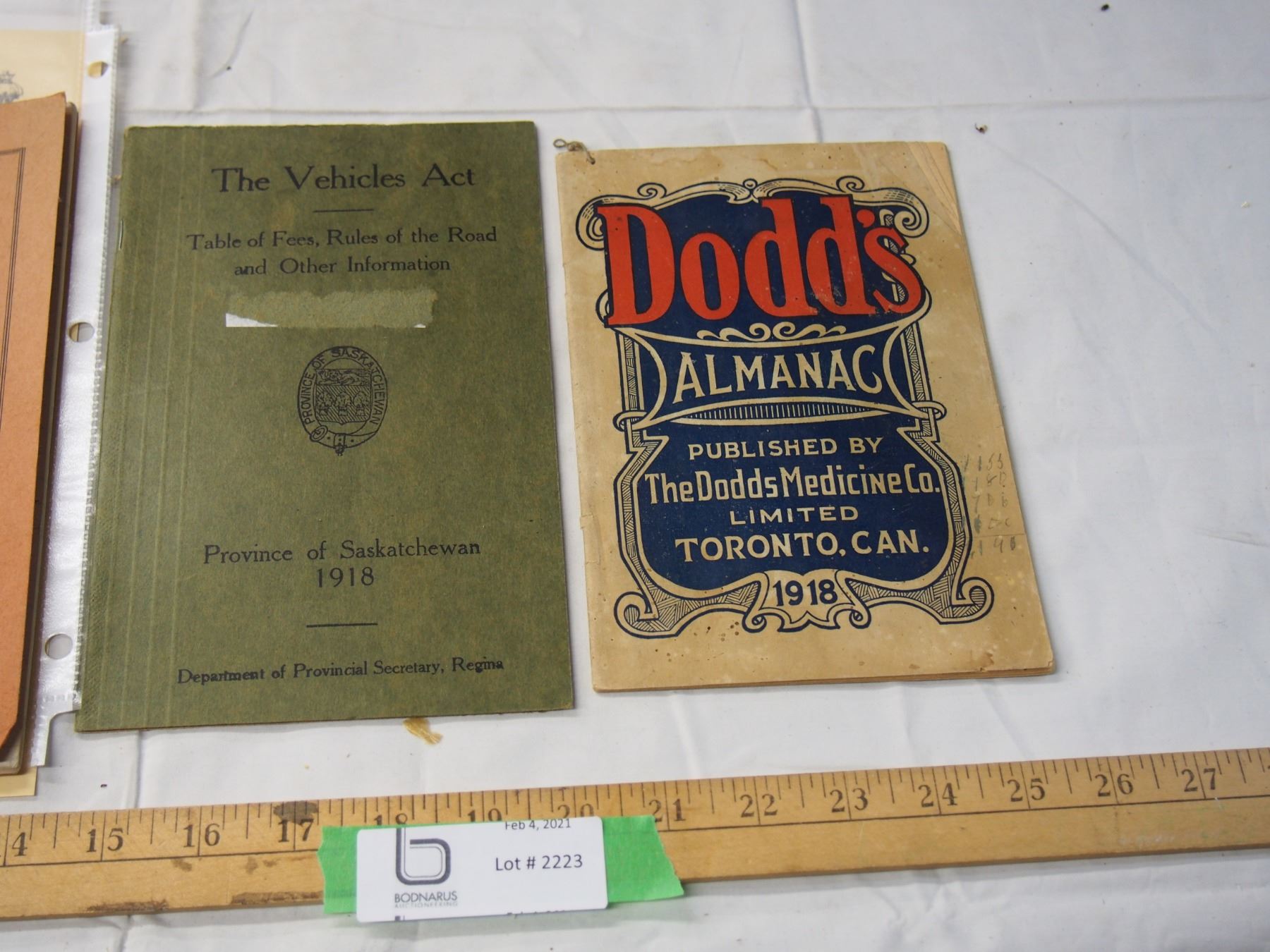 DODDS ALMANAC, 1918 SASK VEHICLE ACT & EXCERISE BOOK