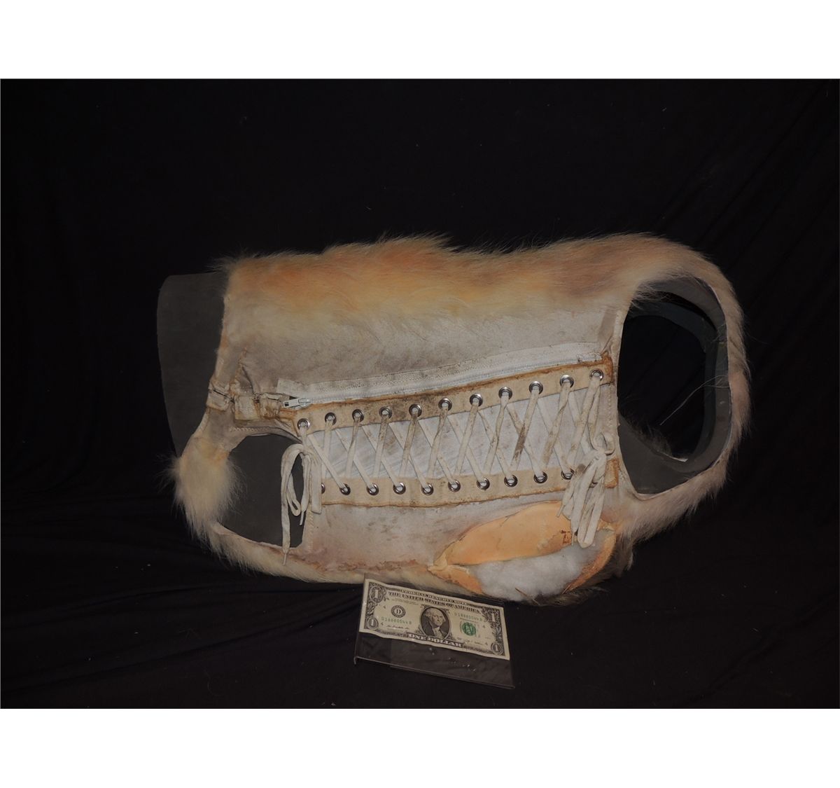 This is a medium size dog stunt harness with a tumor. Laces up in rear.