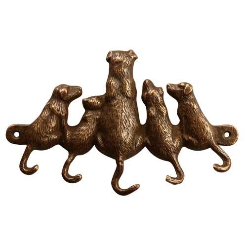 DOG KEY HOOK - 4.5"H 7.5"W 1.5"D - BRASS