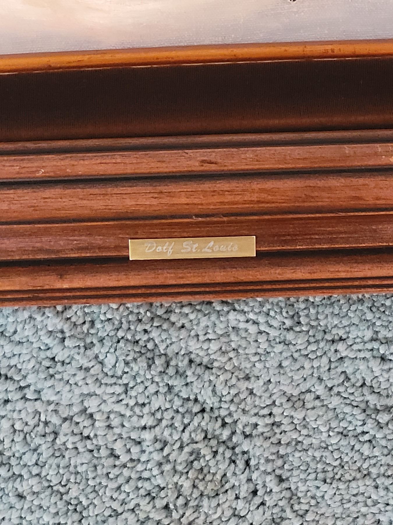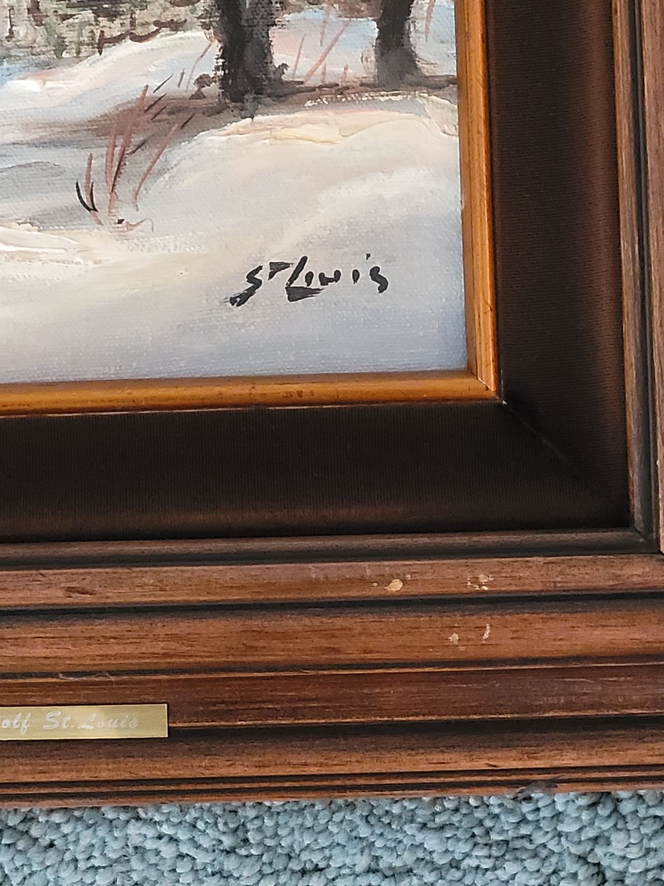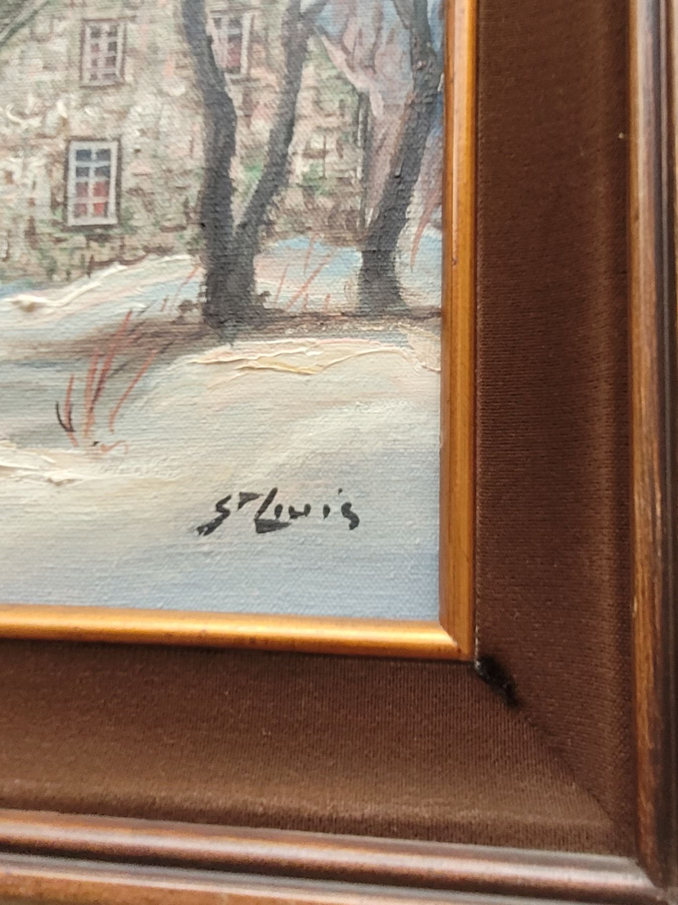 ST. LOUIS, THE PAINTER HAS HIW OWN TECHNIQUE, IT'S THAT OF AN IMPRESSIONIST. HIS RUSTS AND GREYS CORESPOND WITH WITH HIS HISTORIC SUBJECTS. HIS CANVASSES ARE NOW LOOKED FOR BY COLLECTORS. THOSE OWNING A ST. LOUIS APPRECIATE THEM TO THE POINT OF NOT WANTING TO PART WITH THEM.