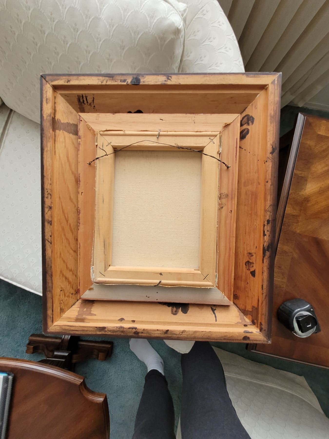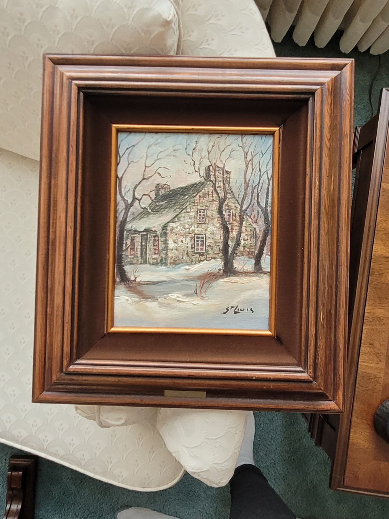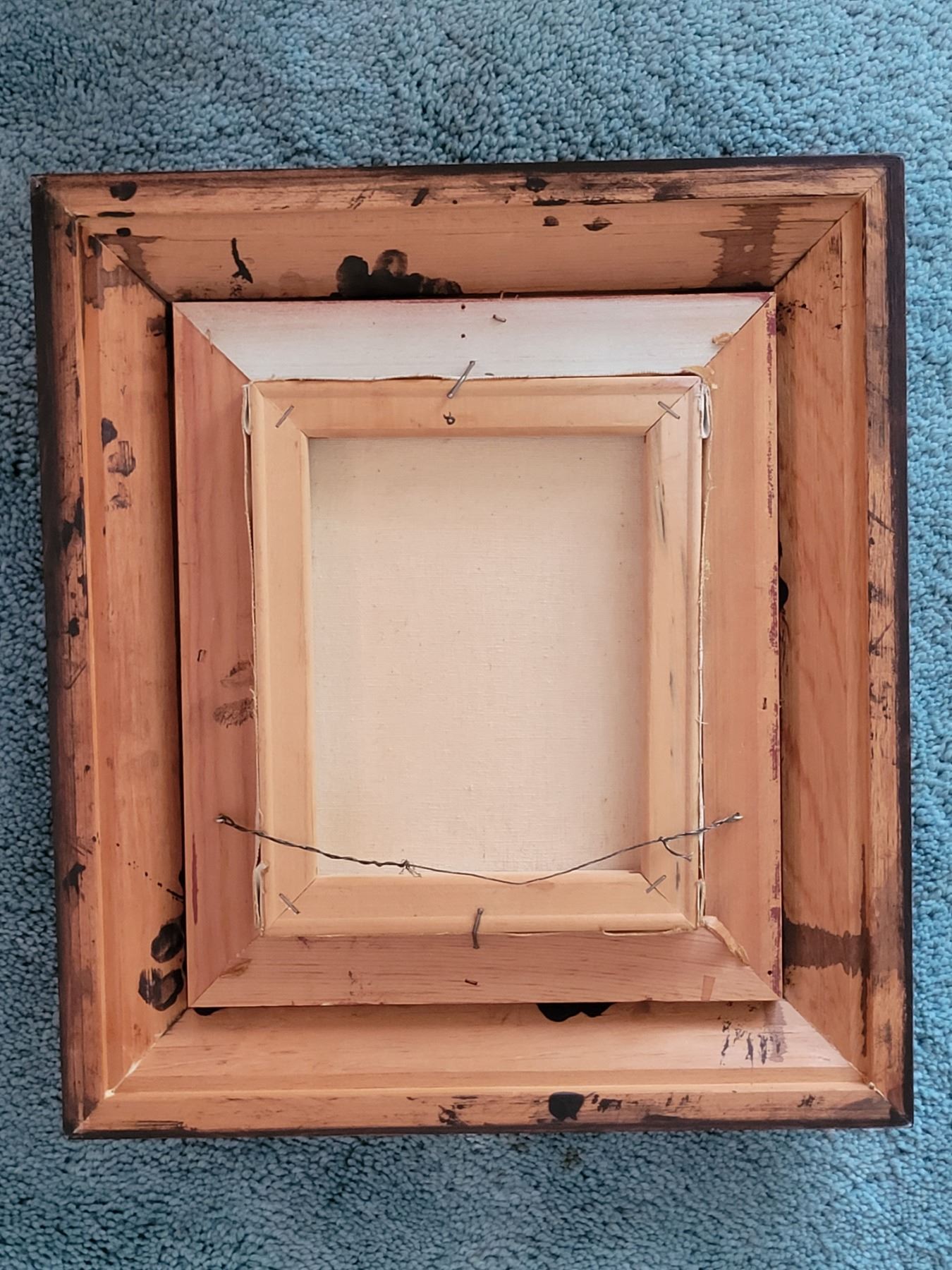 OIL CANVAS MEASURES 8X10. FRAME MEAUSRES 15.5X17.5. FOUND THIS WRITE UP WHILE GOING THROUGH SOME OF MRS. A. CLARKS BELONGINGS, IT WILL COME WITH THIS PICTURE: