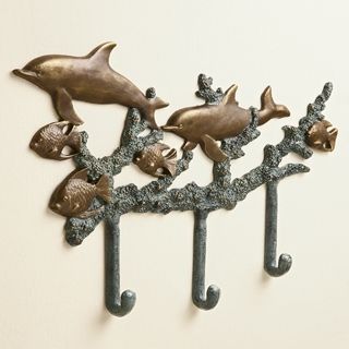 DOLPHIN COAT HOOK - VERDI & BRONZE FINISH - 11"H 17"W 1"D - ALUMINUM