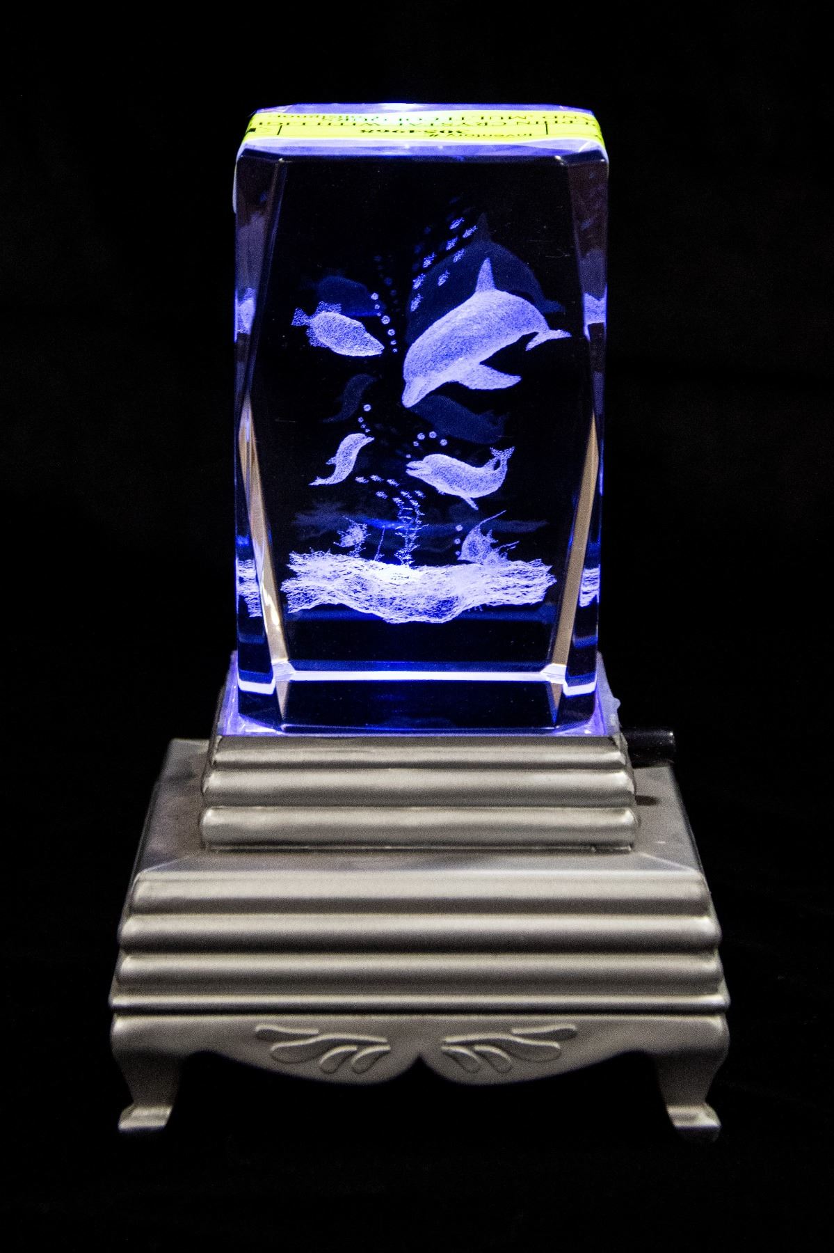DOLPHIN CRYSTAL WITH LIGHT STAND, MULTI COLOURS