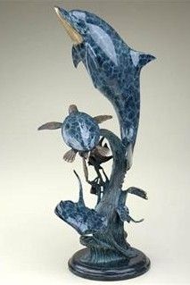 DOLPHIN'S WORLD BRONZE SCULPTURE - 29.5"H 13"W 10 "D - GREAT ATTENTION TO DETAIL - BEAUTIFUL FINISH - LOST WAX CAST- MOUNTED ON MARBLE BASE