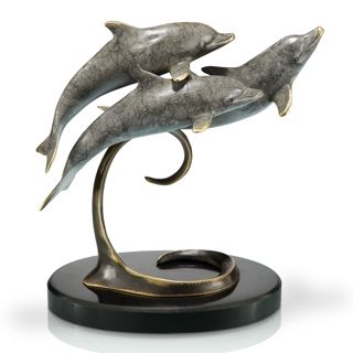 DOLPHIN TRIO BRONZE SCULPTURE - 8" x 8" x 5" - LOST WAX CAST - PATINA FINSH - MOUNTED ON A MARBLE BASE