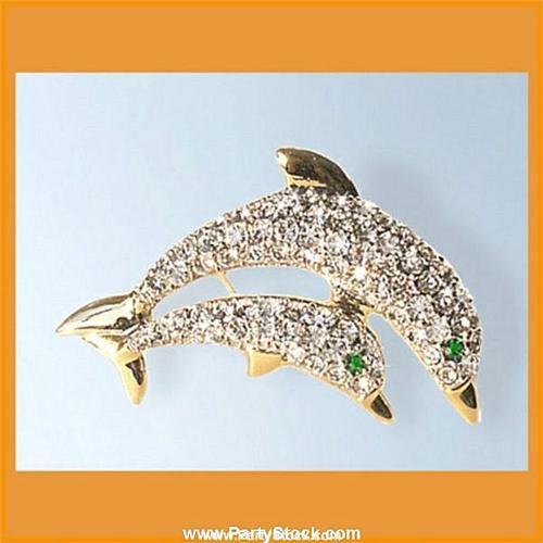 TWIN DOLPHINS MOTHER BABY 24K GOLD CRYSTALS PIN BROOCH 24K GOLD CRYSTAL SWAROVSKI