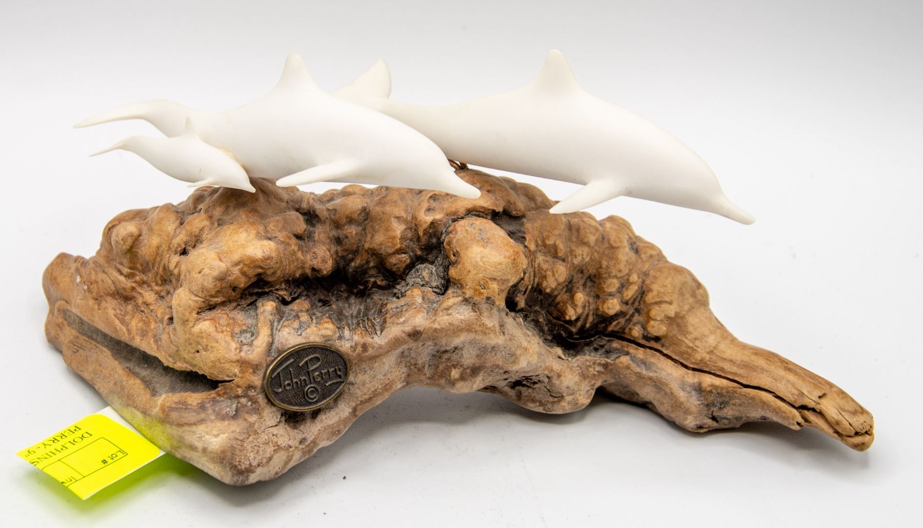 DOLPHINS ON DRIFTWOOD BY JOHN PERRY- 9" LONG
