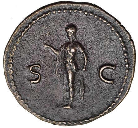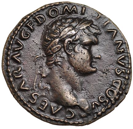 DOMICIANO. As. Roma (77-78 d.C.). Acuñada bajo Vespasiano. A/ Cabeza laureada a der.; CAESAR AVG. F. DOMITIANVS COS. V. R/ Esperanza a izq. sosteniendo flor; S.C. RIC-724. CH-454. Pequeñas marcas. Bonita acuñación. EBC-/MBC+.