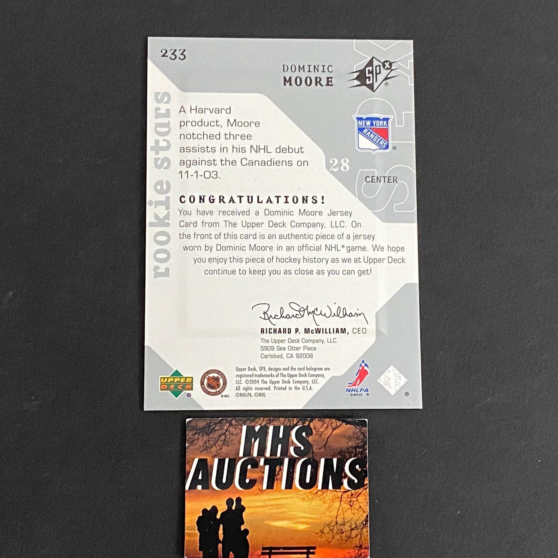 DOMINIC MOORE 2003-04 SPX ROOKIE JERSEY HOCKEY CARD