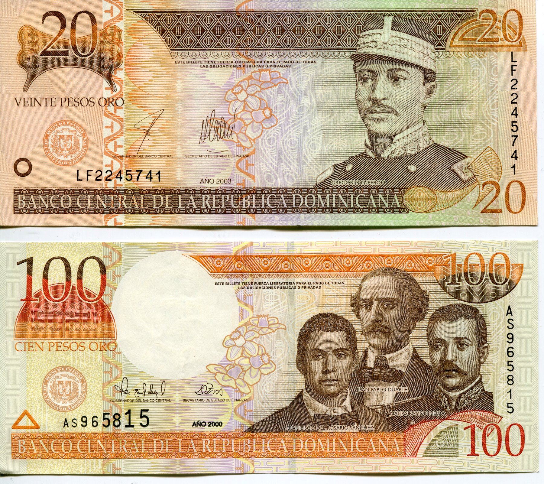 DOMINICAN REPUBLIC 20 & 100 PESO BANK NOTES